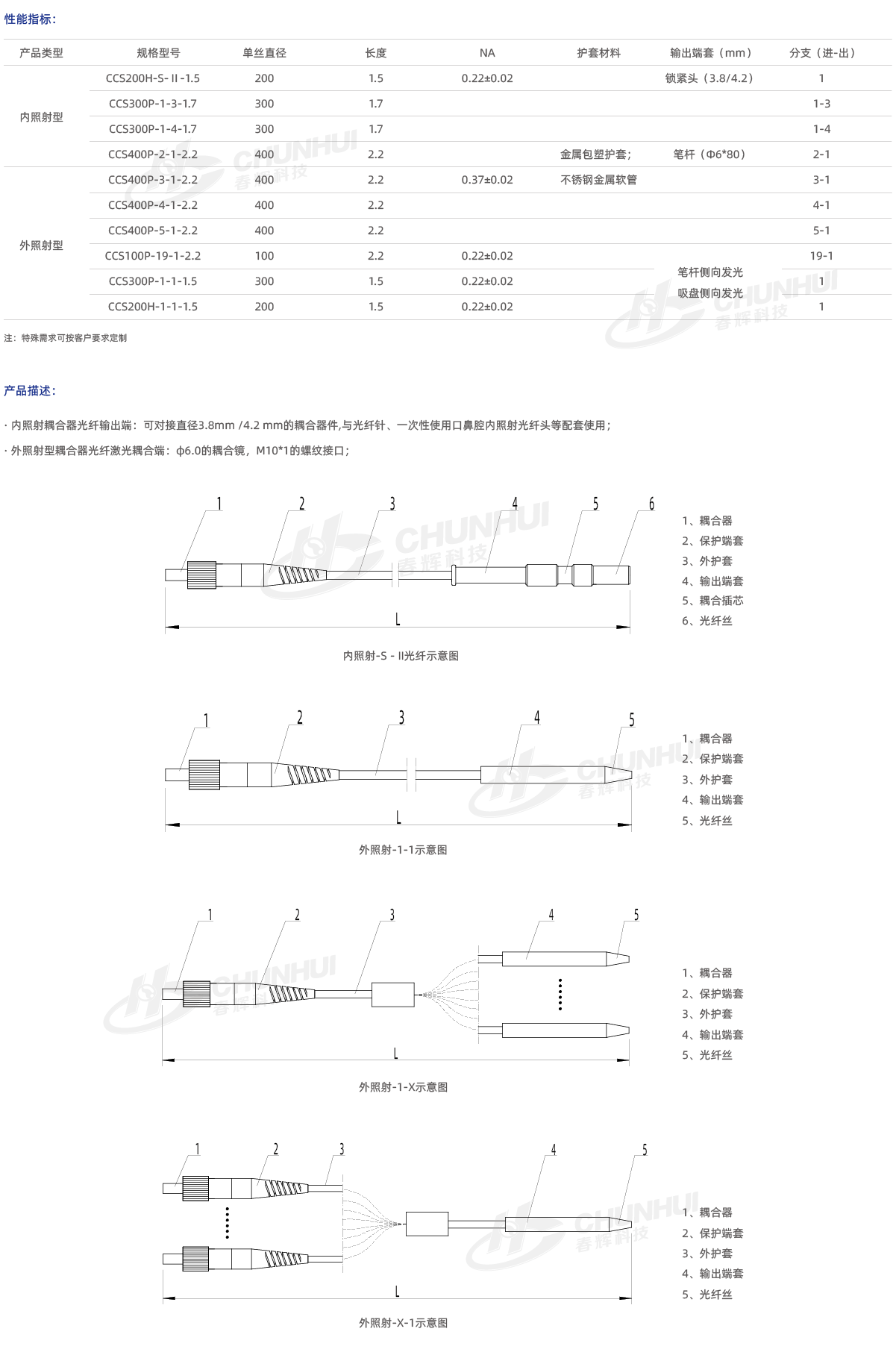 與激光治療儀配套使用,傳輸激光器能量,用于激光理療等。